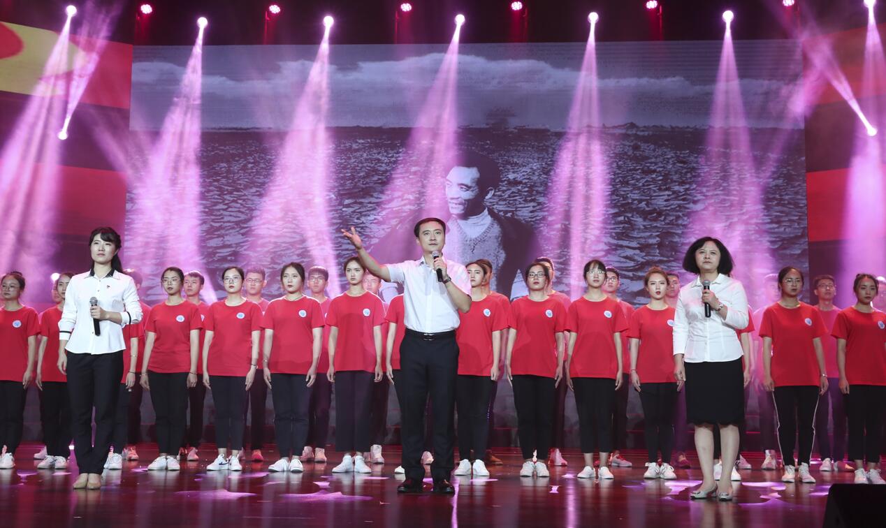 最后,全体与会党员集中聆听了一场别开生面、感人至深的专题党课——《信仰的力量》红色经典诵读会,这也是学校“不忘初心 牢记使命”主题教育的第一堂专题党课。校党委书记韩卉、附属中学青年教师陈浩担任讲述人,传媒学院及地理与环境科学学院部分师生参加演出。