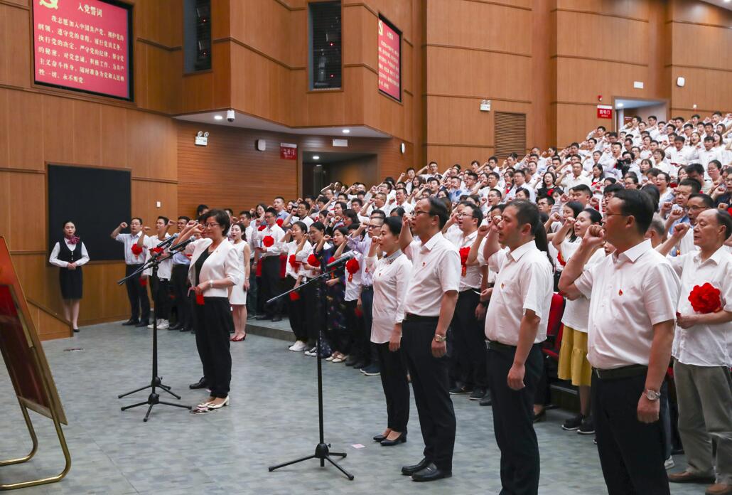 会上,全体党员面向党旗,在校党委副书记银熙惠的领誓和校党委委员、副校长陈云坤的监誓下,进行了新党员宣誓和老党员重温入党誓词。