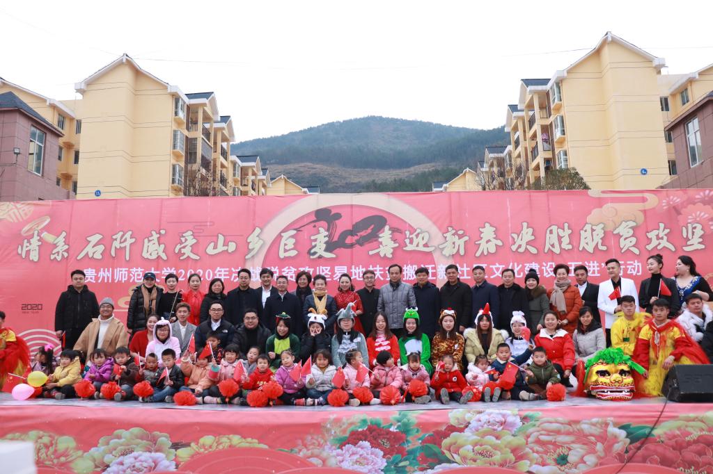 1月16日,临近春节,石阡县气温接近冰点,石阡县罗家寨易地扶贫搬迁安置点却温暖如春,处处洋溢着幸福的笑容。来自贵州师范大学的师生志愿者团队在校党委书记韩卉的率领下,来到社区内开展了“易地扶贫搬迁新社区文化建设‘五进’行动”,为社区居民送上新春祝福,为当地群众带来丰富多彩的“精神食粮”。