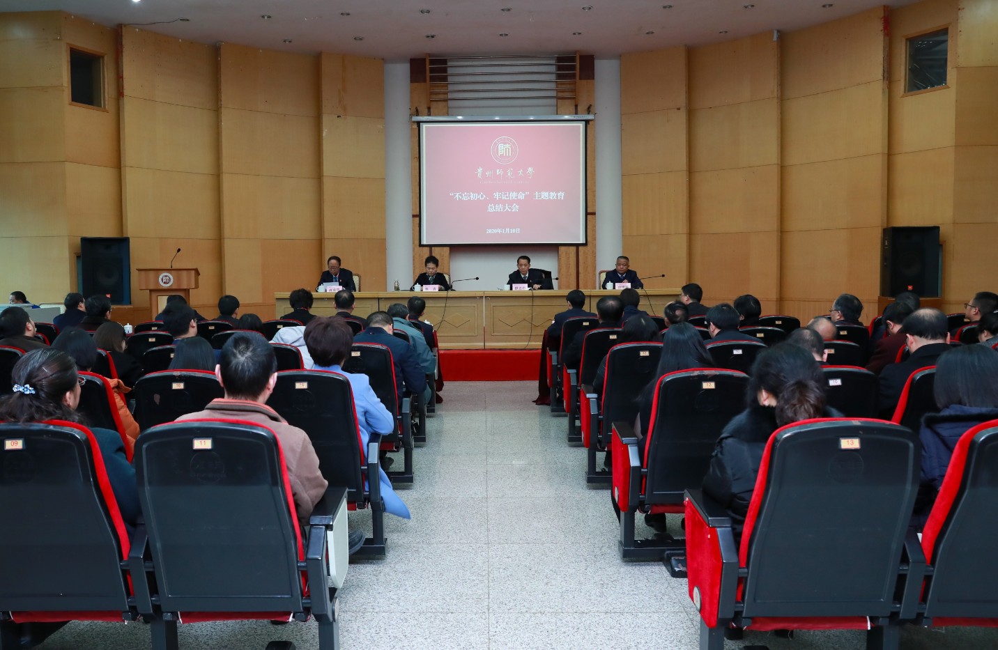 韩卉强调,不忘初心、牢记使命,是加强党的建设的永恒课题,也是全体党员干部的终身课题,只有进行时,没有完成时。我们要认真贯彻落实习近平总书记重要讲话精神和党的十九届四中全会、省委十二届六次全会精神,重整行装再出发,把不忘初心、牢记使命的要求融入到学校党的政治建设、思想建设、组织建设、作风建设和纪律建设的各个方面,建立健全完善经常性查找解决各种违背初心使命问题的长效机制,在新时代把党的自我革命不断推向深入。要始终保持政治本色和前进动力,坚守教育报国初心,勇担立德树人使命,把初心和使命镌刻在推进贵州教育现代化、建设特色教育强省的伟大实践中,镌刻在决战脱贫攻坚、决胜同步小康、开创百姓富生态美多彩贵州新未来的伟大实践中,只争朝夕,不负韶华,以实干笃定前行,努力跑出新时代贵州师大风采,奋力书写新时代学校改革发展的新篇章。